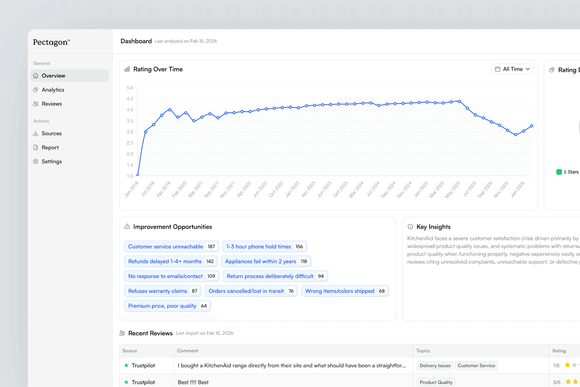 Don't start from zero. Pectagon imports your existing reviews going back as far as the platform allows, so you have a complete dataset from day one.