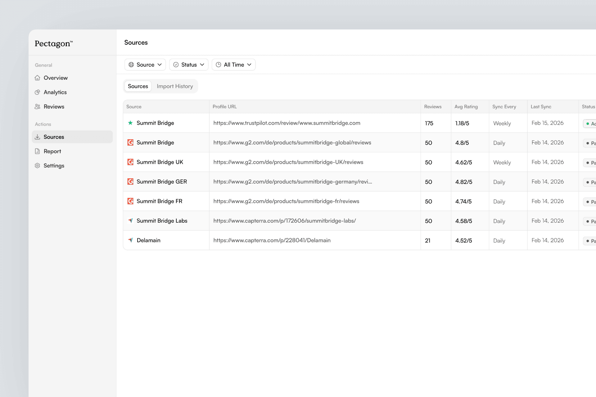 See at a glance which sources are syncing correctly and which need attention.